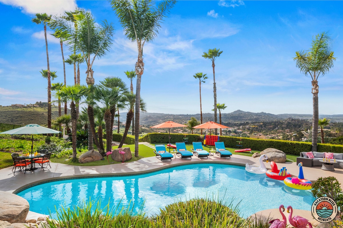 El CajonHost your next getaway or epic retreat at this hilltop mansion in El Cajon! Enjoy stunning views of the mountains, city, and OCEAN from this one-of-a-kind estate. With a pool, spa, two game rooms, gym, huge backyard, and epic viewing deck, it’s perfect inside and out. You'll have 4,500 sq. ft. of space, 7 bedrooms, multiple dining areas, stylish finishes, a chef’s kitchen, indoor bar, and unforgettable sunsets-plus views that stretch all the way to Coronado Island! We can’t wait to host you!
