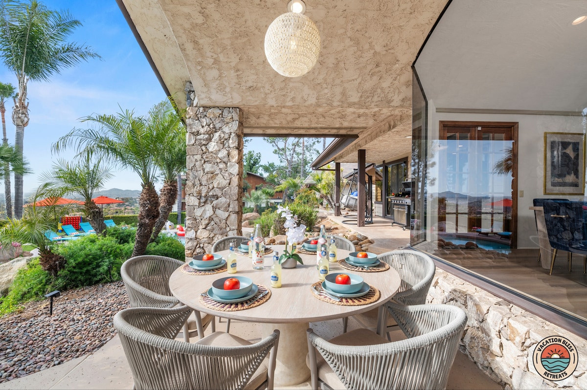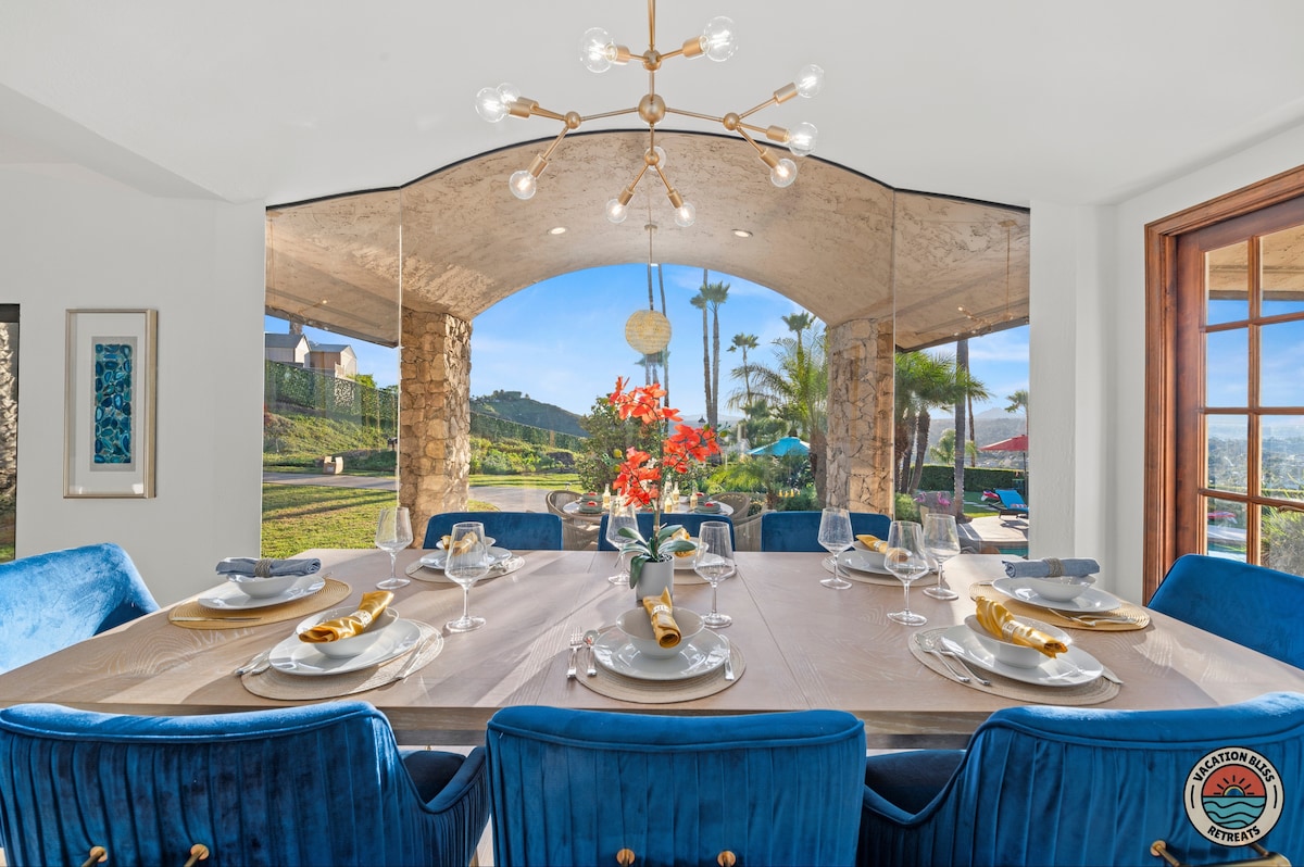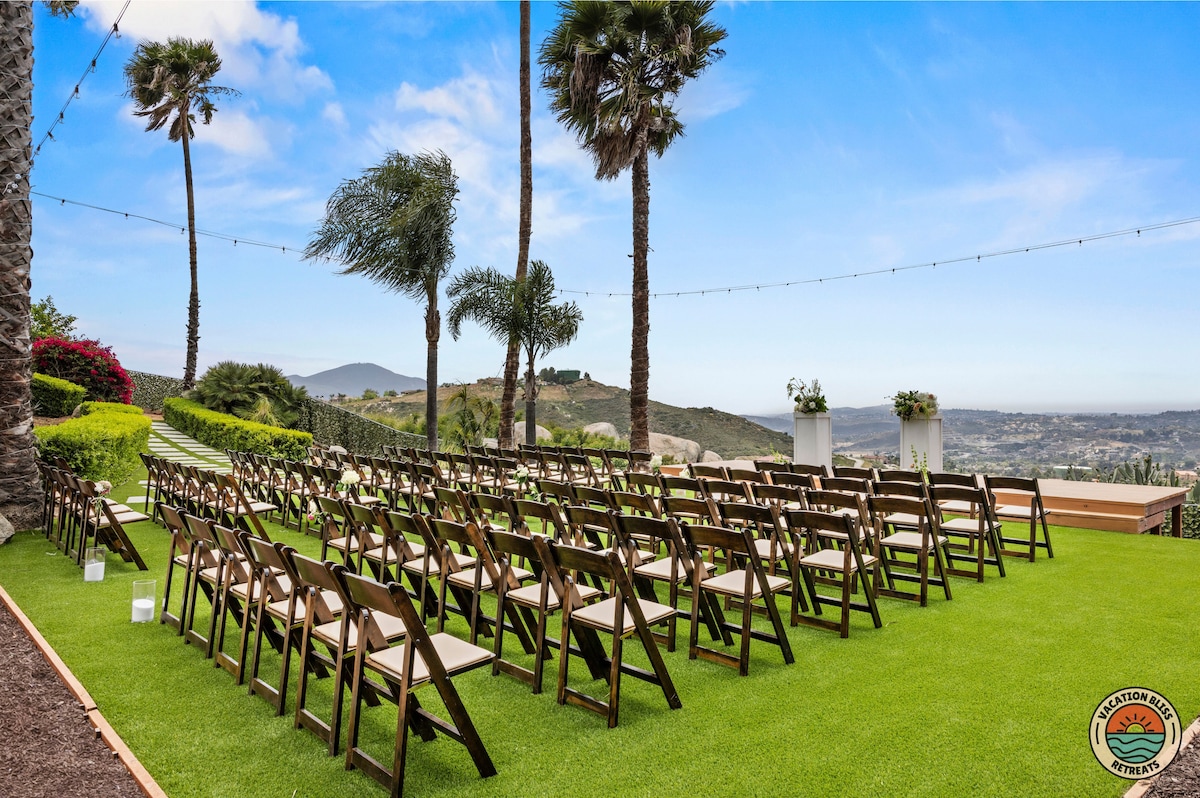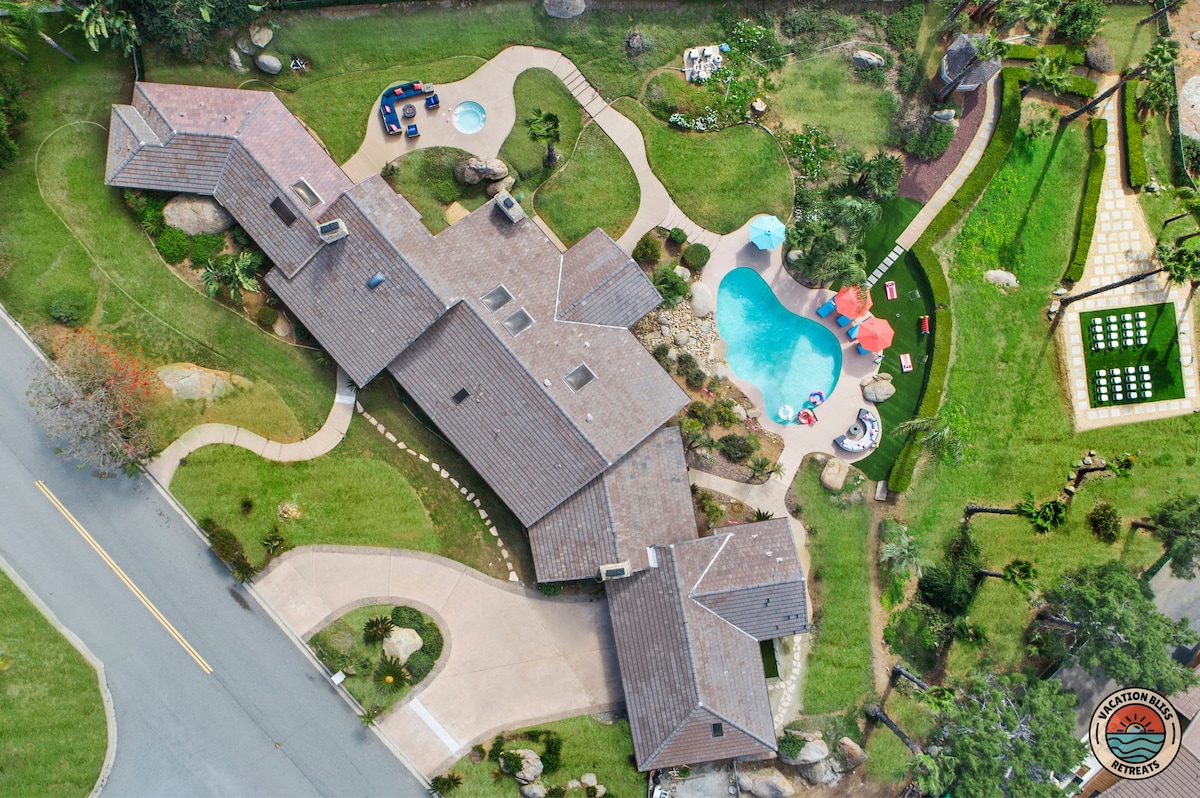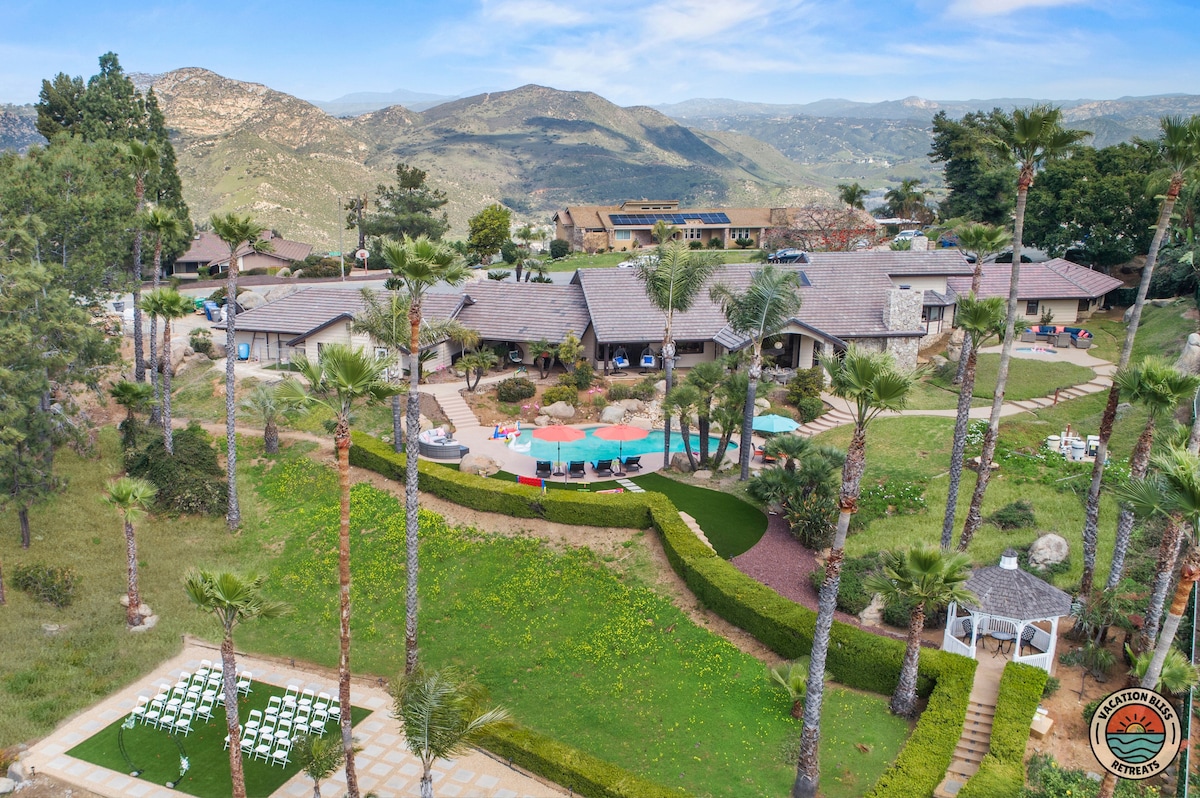El CajonHost your next getaway or intimate wedding at this hilltop mansion in El Cajon! Enjoy stunning views of the mountains, city, and OCEAN from this one-of-a-kind estate. With a pool, spa, two game rooms, gym, huge backyard, and a special spot to say "I do," it’s perfect inside and out. You'll have 4,500 sq. ft. of space, 6 bedrooms, 18 beds, stylish finishes, a chef’s kitchen, indoor bar, and unforgettable sunsets-plus views that stretch all the way to Coronado Island! We can’t wait to host you!