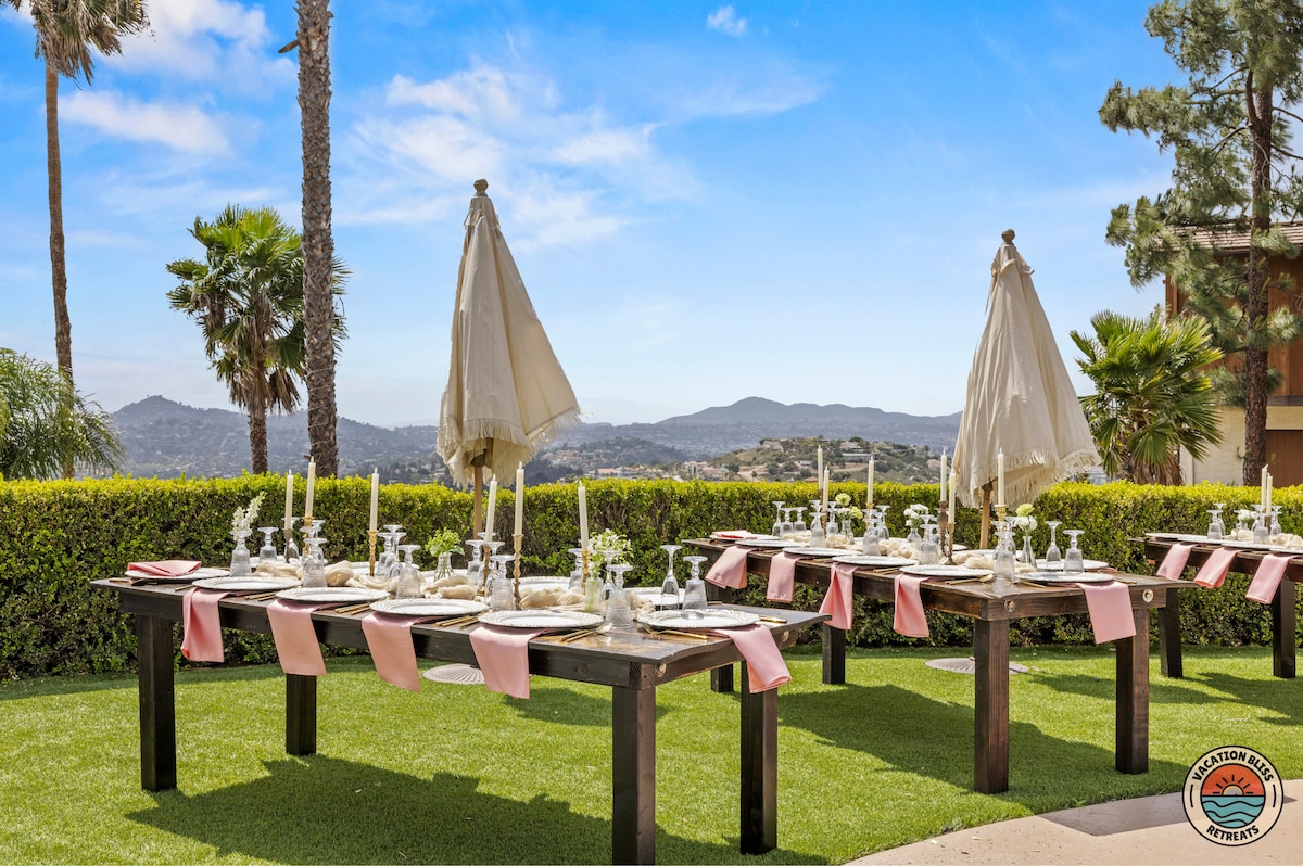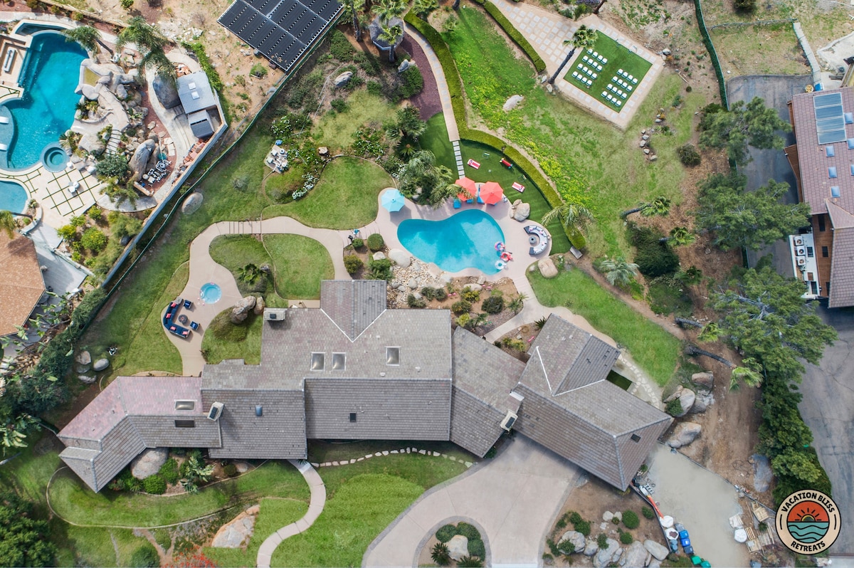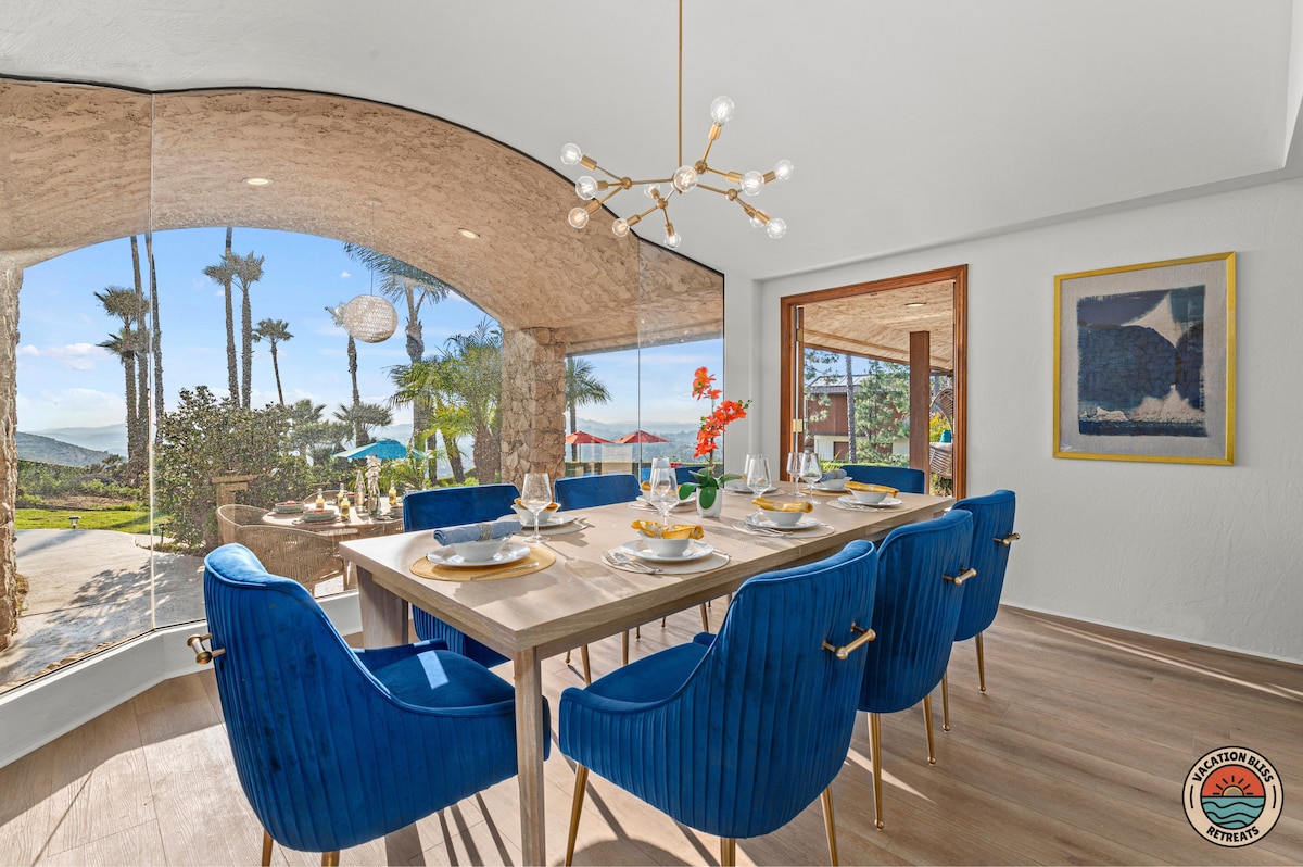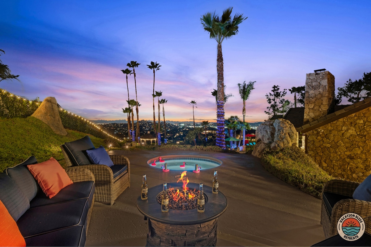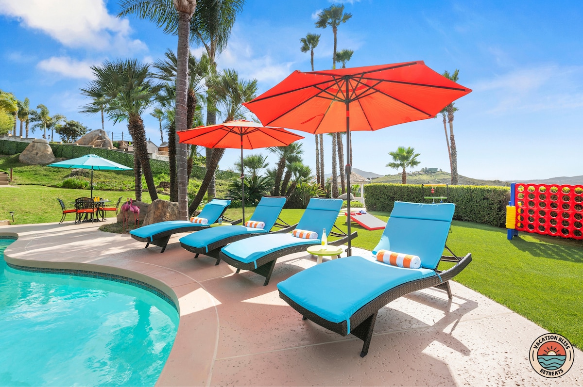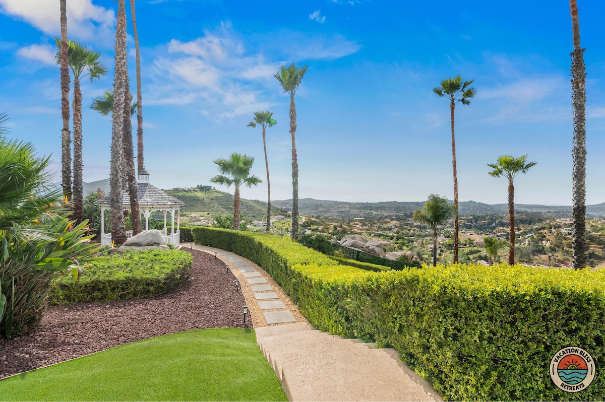 El CajonHost your next getaway or intimate wedding at this hilltop mansion in El Cajon! Enjoy stunning views of the mountains, city, and OCEAN from this one-of-a-kind estate. With a pool, spa, two game rooms, gym, huge backyard, and a special spot to say "I do," it’s perfect inside and out. You'll have 4,500 sq. ft. of space, 6 bedrooms, 18 beds, stylish finishes, a chef’s kitchen, indoor bar, and unforgettable sunsets-plus views that stretch all the way to Coronado Island! We can’t wait to host you!