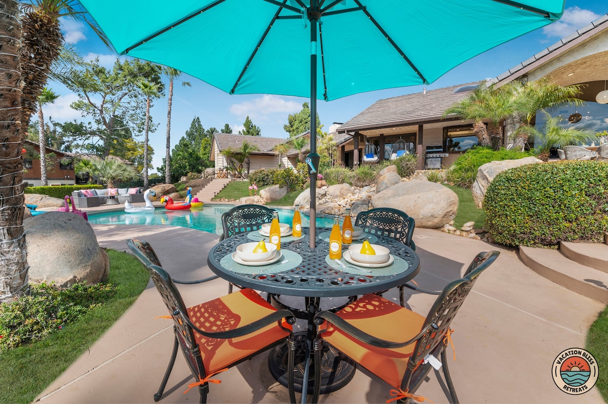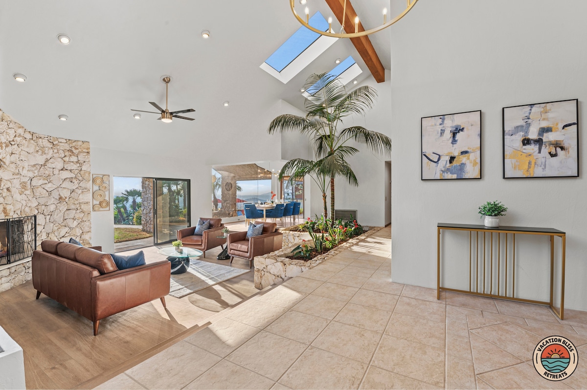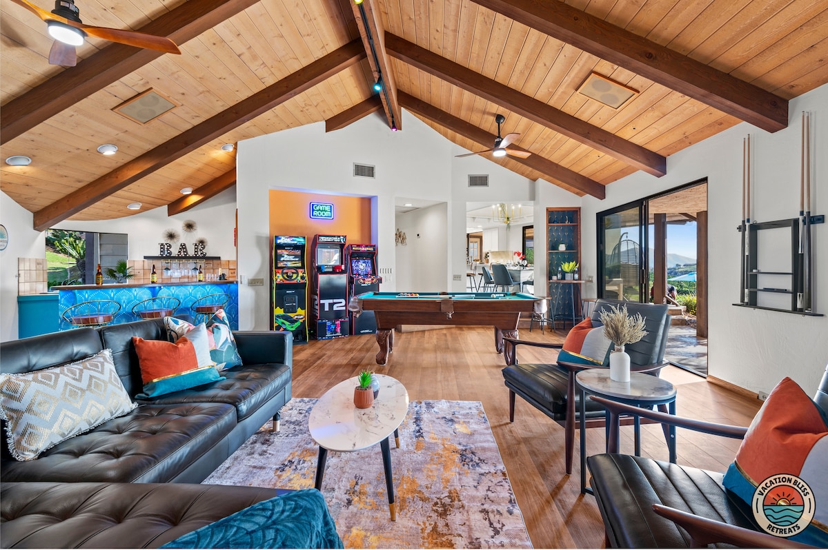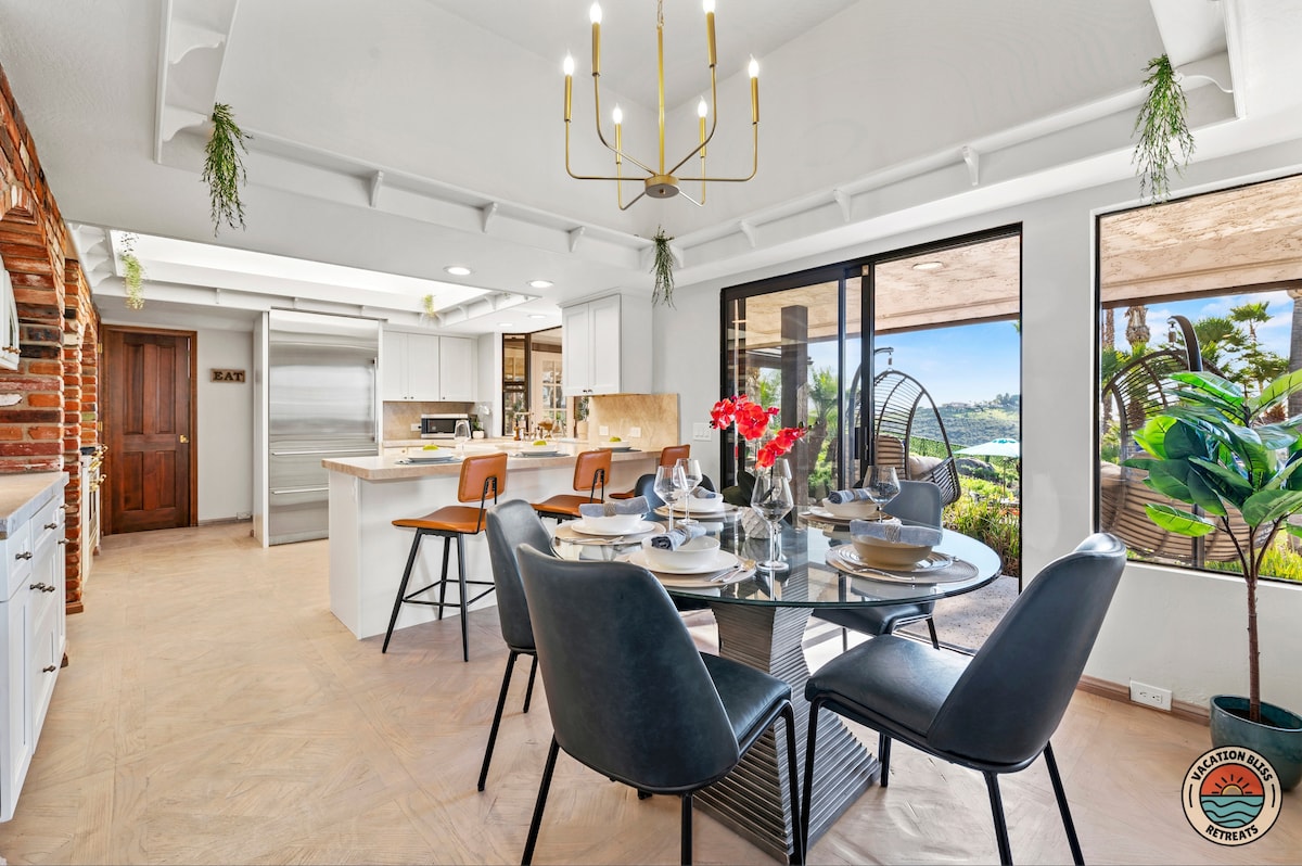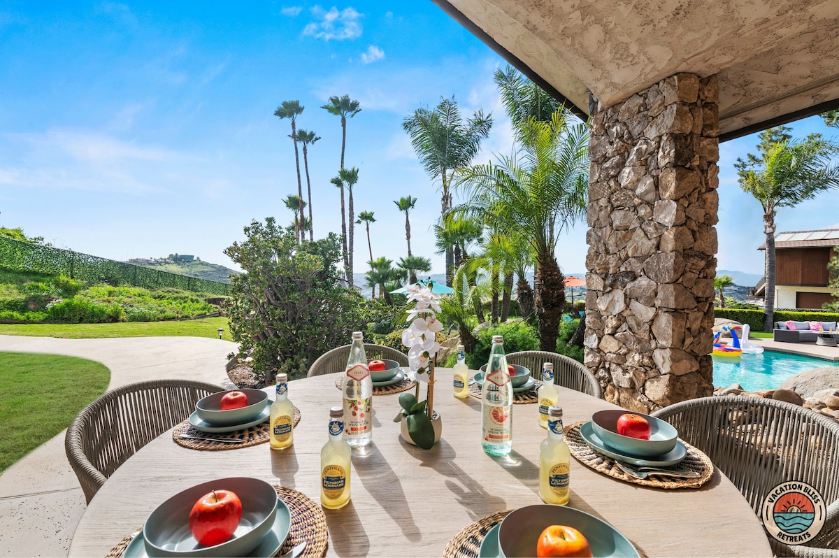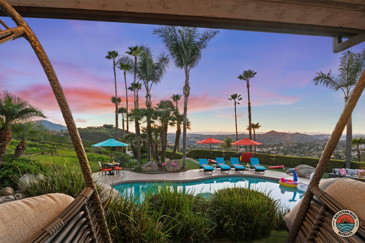 El CajonHost your next getaway or intimate wedding at this hilltop mansion in El Cajon! Enjoy stunning views of the mountains, city, and OCEAN from this one-of-a-kind estate. With a pool, spa, two game rooms, gym, huge backyard, and a special spot to say "I do," it’s perfect inside and out. You'll have 4,500 sq. ft. of space, 6 bedrooms, 18 beds, stylish finishes, a chef’s kitchen, indoor bar, and unforgettable sunsets-plus views that stretch all the way to Coronado Island! We can’t wait to host you!