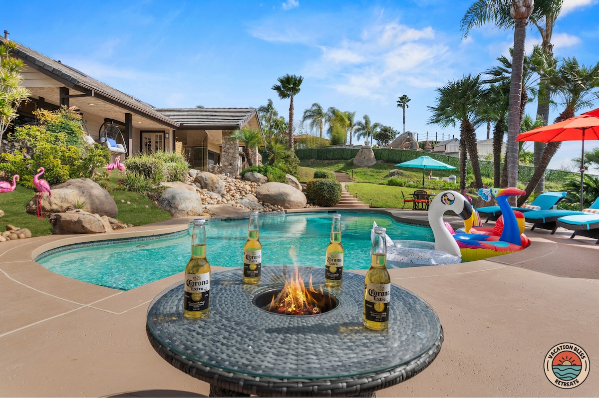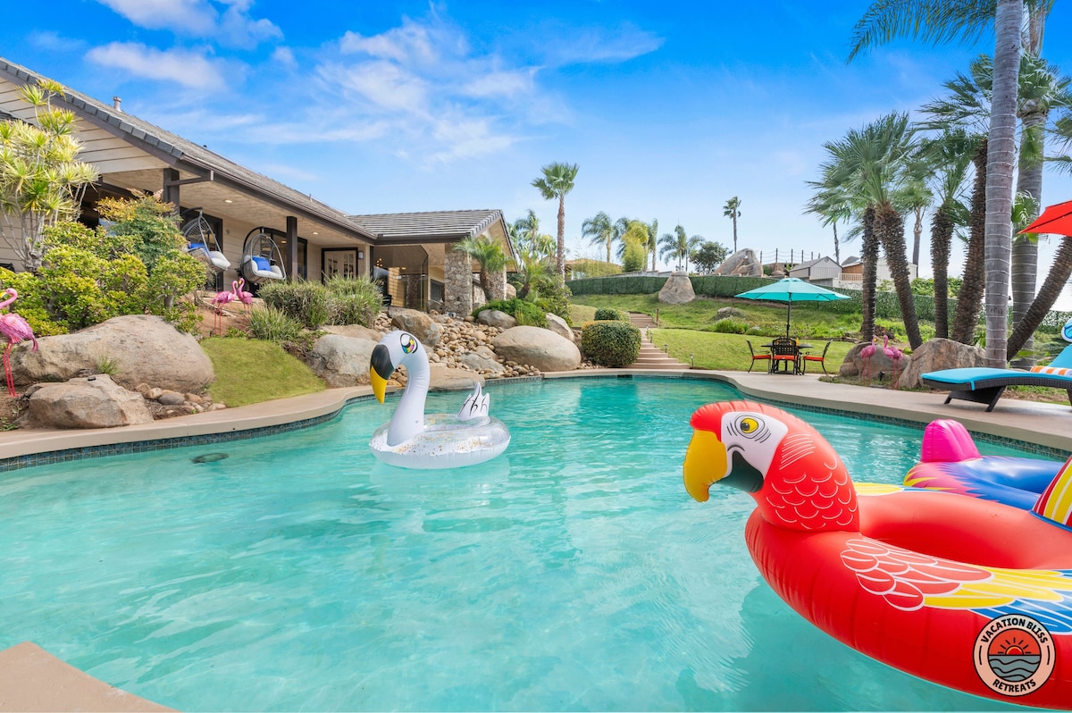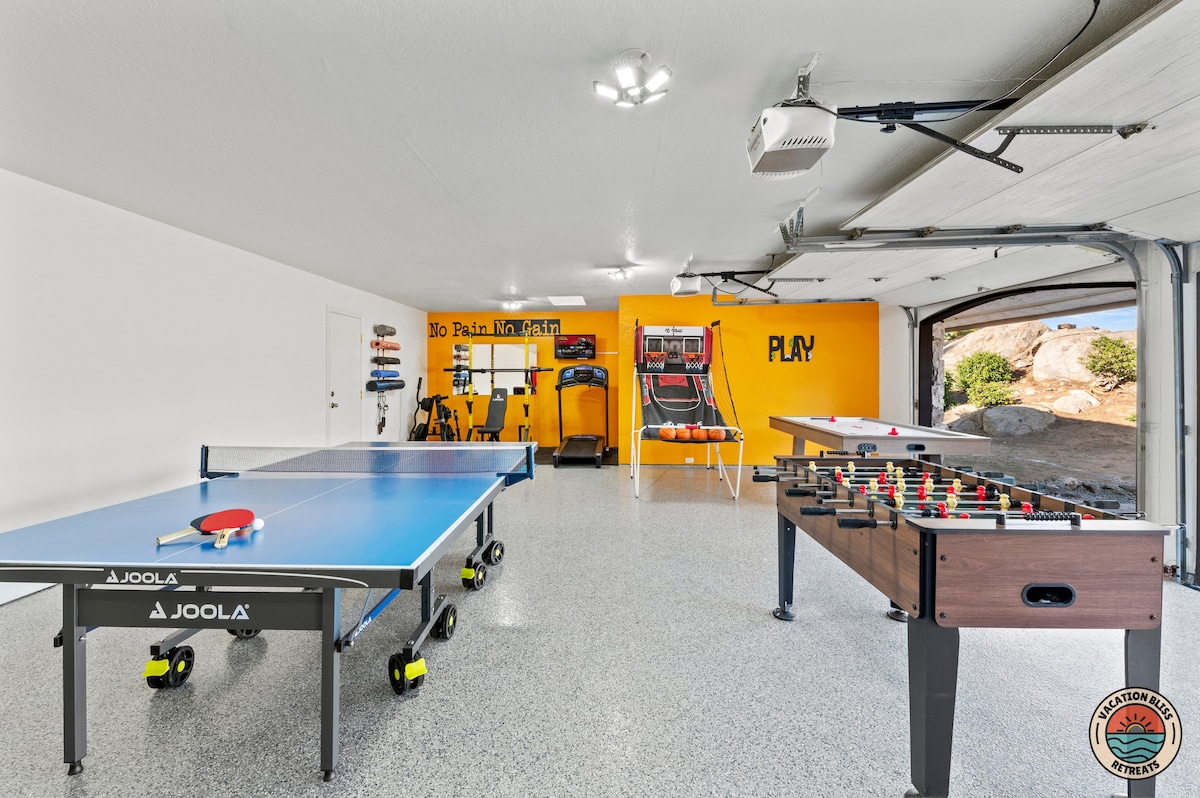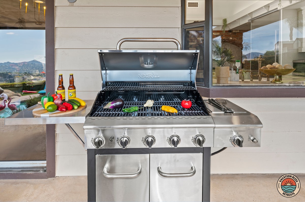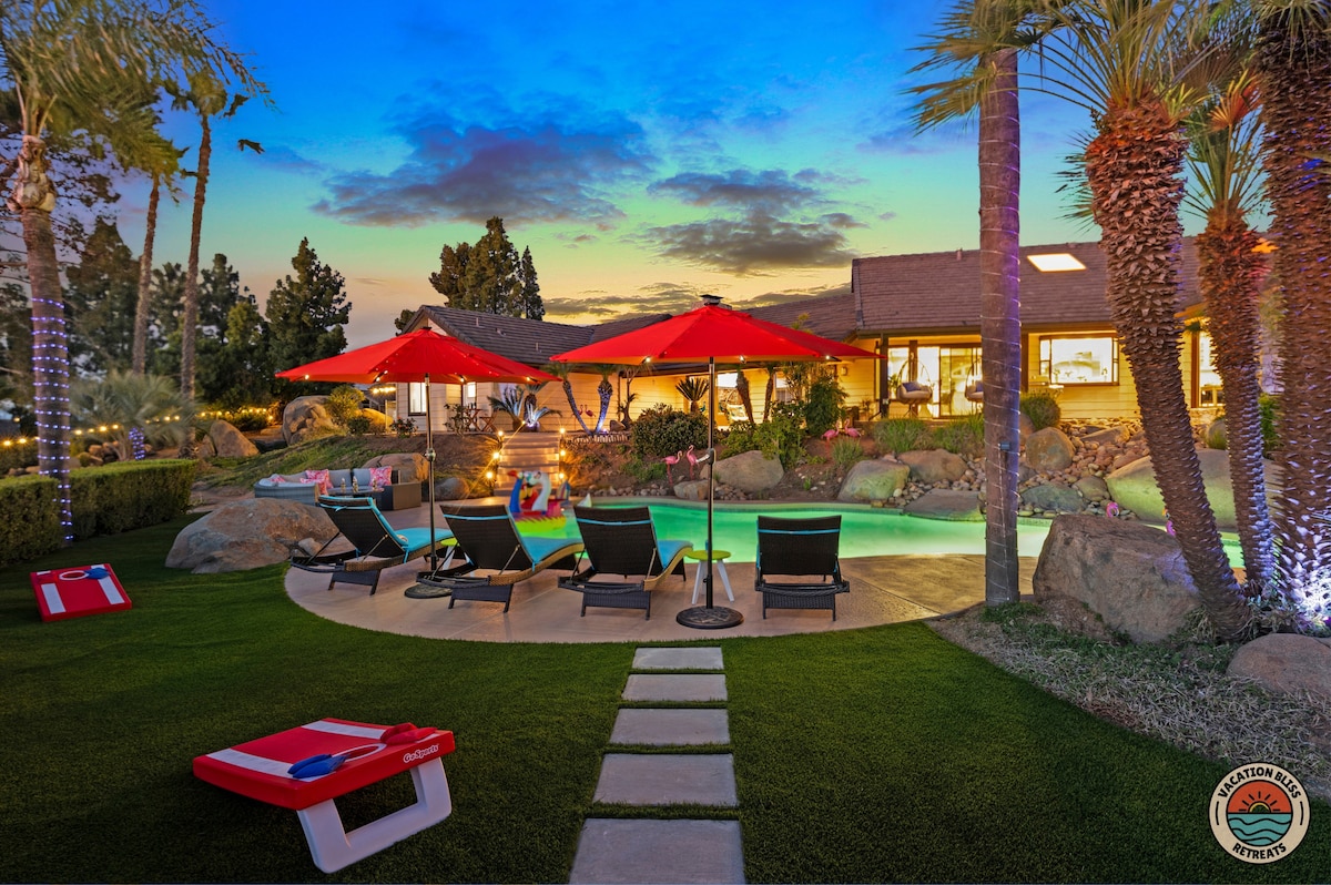 El CajonHost your next getaway or intimate wedding at this hilltop mansion in El Cajon! Enjoy stunning views of the mountains, city, and OCEAN from this one-of-a-kind estate. With a pool, spa, two game rooms, gym, huge backyard, and a special spot to say "I do," it’s perfect inside and out. You'll have 4,500 sq. ft. of space, 6 bedrooms, 18 beds, stylish finishes, a chef’s kitchen, indoor bar, and unforgettable sunsets-plus views that stretch all the way to Coronado Island! We can’t wait to host you!
