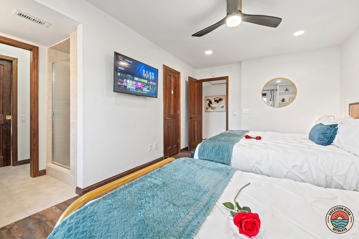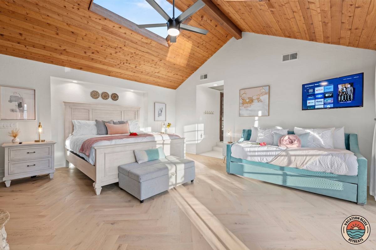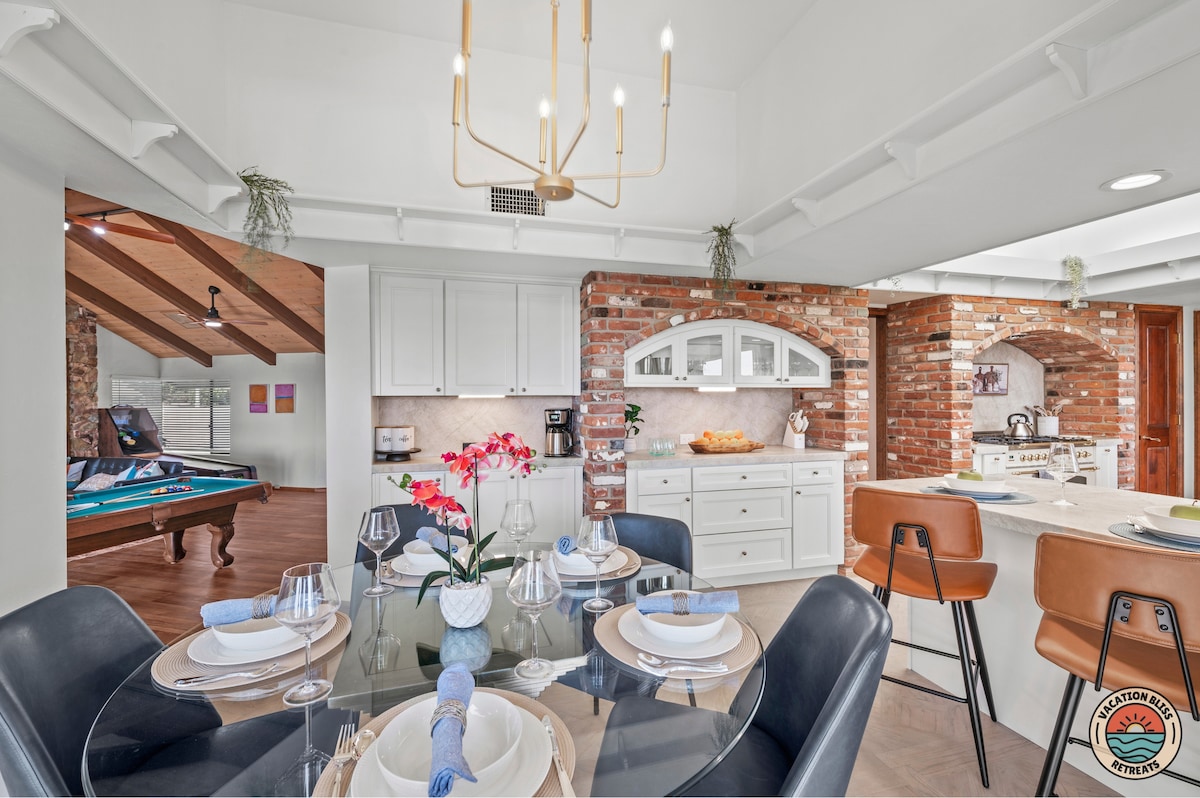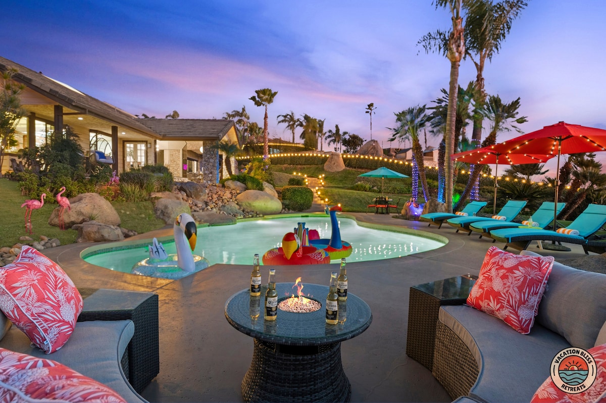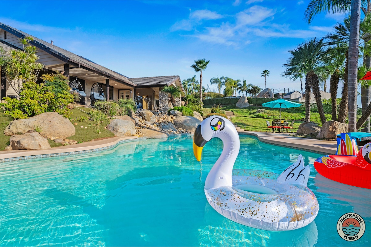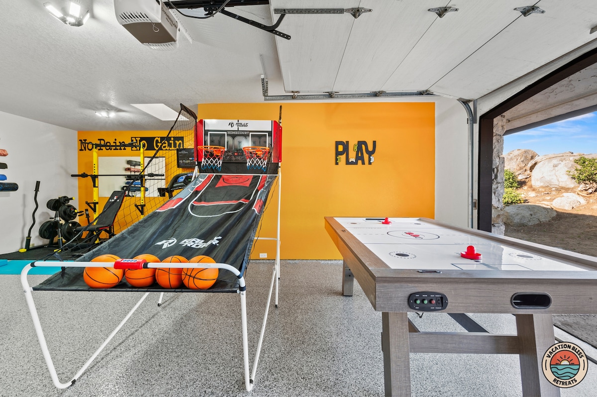 El CajonHost your next getaway or intimate wedding at this hilltop mansion in El Cajon! Enjoy stunning views of the mountains, city, and OCEAN from this one-of-a-kind estate. With a pool, spa, two game rooms, gym, huge backyard, and a special spot to say "I do," it’s perfect inside and out. You'll have 4,500 sq. ft. of space, 6 bedrooms, 18 beds, stylish finishes, a chef’s kitchen, indoor bar, and unforgettable sunsets-plus views that stretch all the way to Coronado Island! We can’t wait to host you!