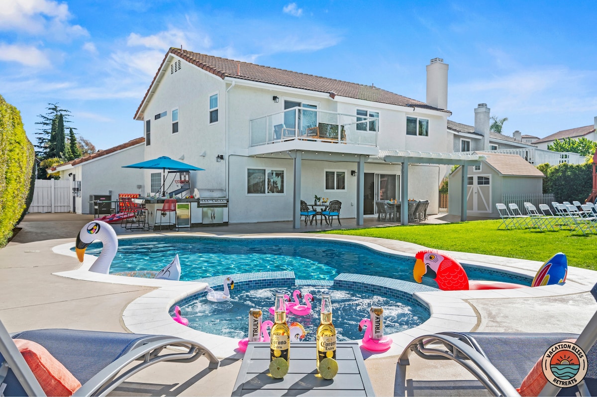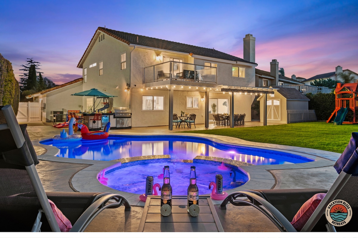 OceansideKick back and relax at this awesome Oceanside getaway that has everything you need for a fun and chill vacation. Hang out by the pool, unwind in the spa, host your next backyard bbq, or cozy up around the fire pit. The backyard is packed with cool amenities, and inside, you’ve got plenty of space for the whole crew with a stylish and comfy setup. When you’re ready to explore, the beach is just a quick 3-mile drive away, plus, there’s tons of fun stuff nearby to check out!