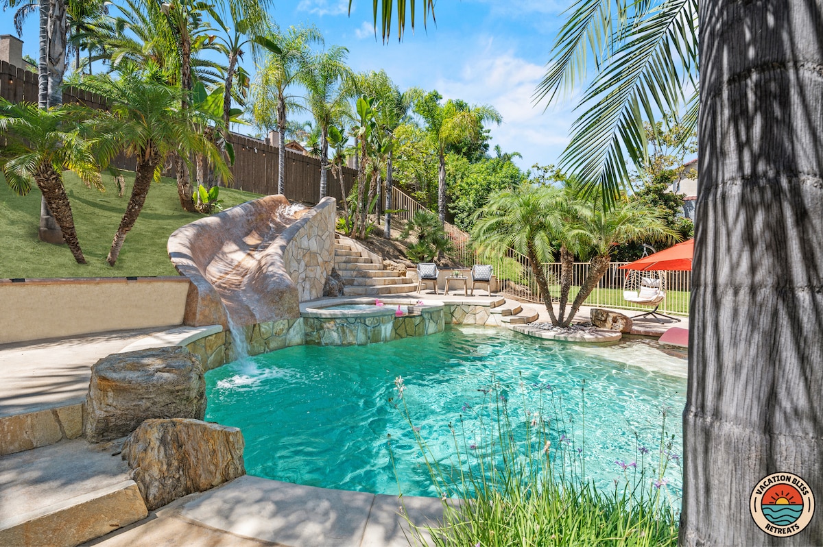 El CajonGet ready for your next epic escape! Fly down the waterslide, rejuvenate in the pool and spa, sip cocktails at the tiki bar, and gather around the fire pit in your own private tropical paradise. Challenge friends to billiards or ping pong, hit a workout in the gym, or fire up the backyard BBQ. With space for 16 guests and endless fun for kids and adults, this home is perfect for family trips or group retreats. And the best part? You’ll be just minutes away from San Diego’s top attractions!