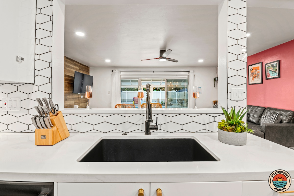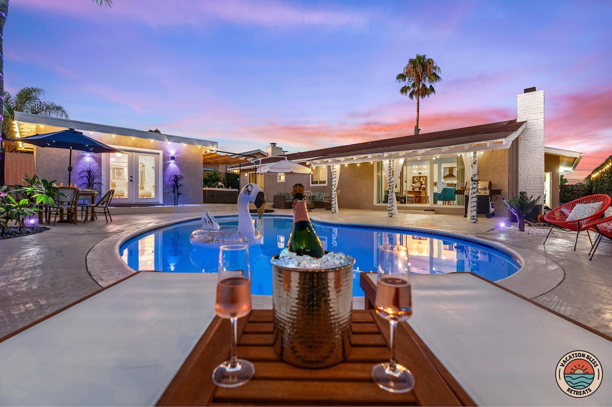 La MesaThis La Mesa gem blends boho vibes with tropical flair. Enjoy a peaceful Zen garden, saltwater pool, and relaxing jacuzzi. Inside, you’ll find stylish finishes and super comfy furniture that make it easy to settle in. The dreamy guest suite doubles as a yoga studio or extra bedroom, and there’s even a full gym if you want to keep up your fitness routine while on vacay. Whether you’re traveling with family or friends, this spot has everything you need for a laid-back and memorable stay.