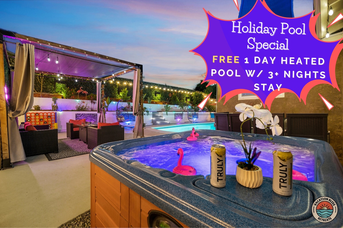 Pool heating takes up to 10 hours to reach 82°F and must be requested in advance, ideally at the time of booking. Payment must be made before heating begins. Any tampering with pool equipment will result in a $1000 fine.