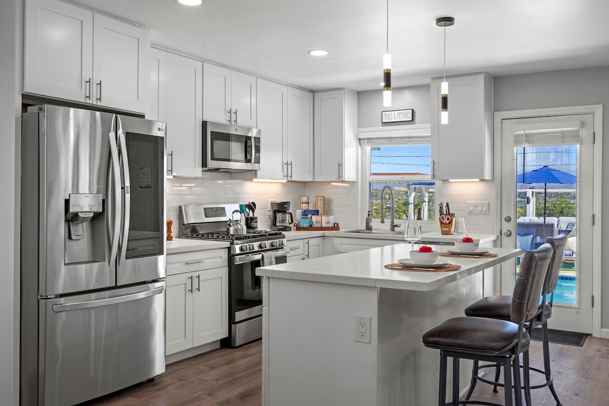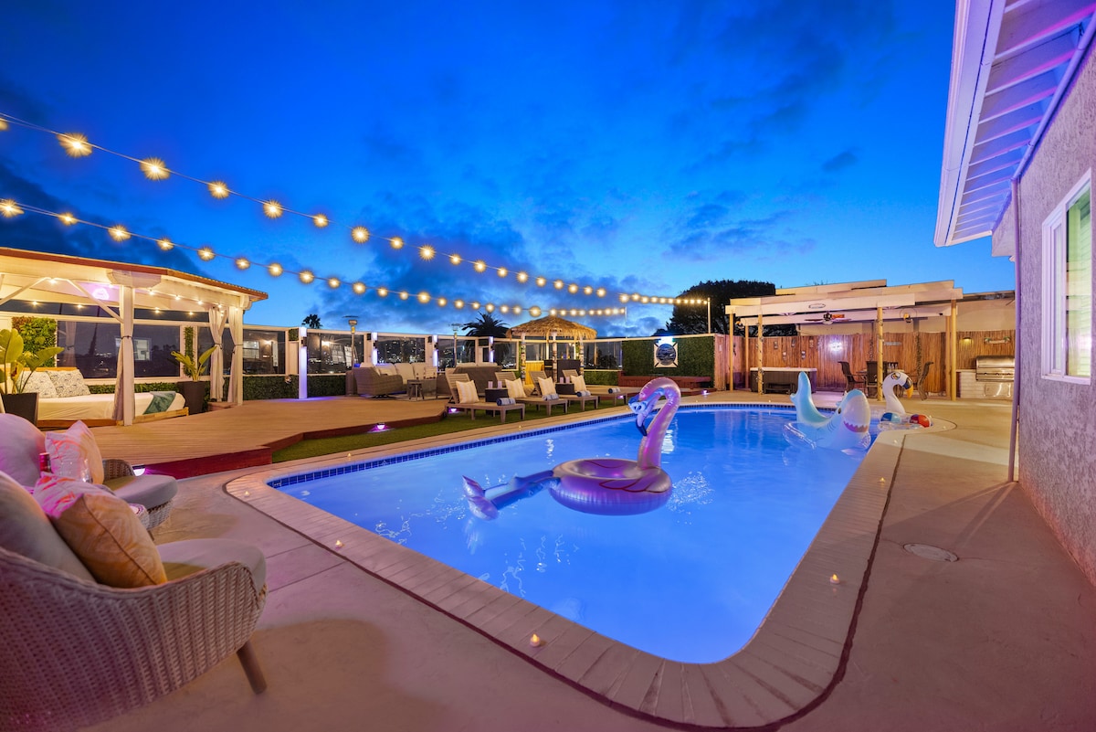 La MesaYour own slice of paradise! Kick back by the pool, soak in the hot tub, chill out at the tiki lounge, or hang by the fire pit with your crew-this place is all about good vibes and great memories. There’s even an outdoor bed for those lazy stargazing nights and plenty of games to keep everyone entertained. When the sun goes down, the ambient lighting makes the whole space glow. With a guest house and enough space for up to 16 guests, this home is the ultimate getaway for friends and family!